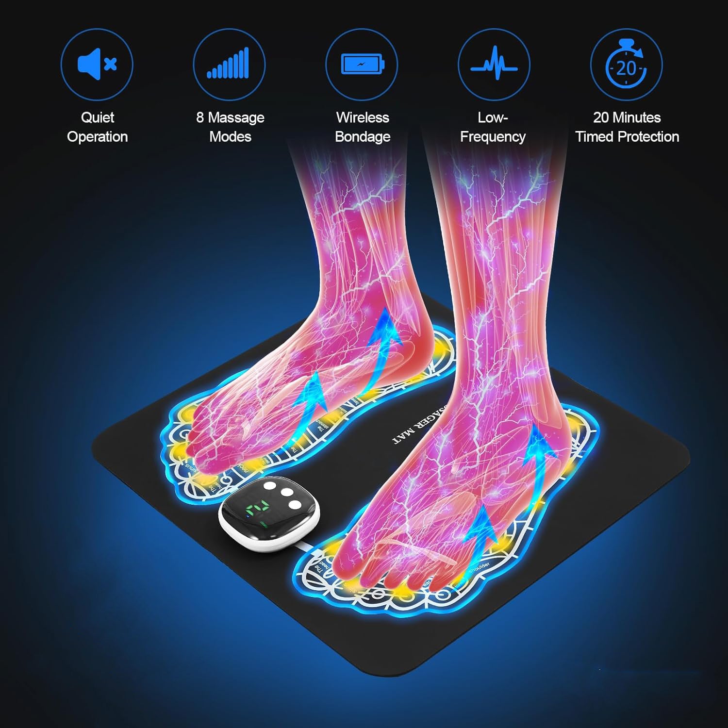 Our massager deeply stimulates foot and leg muscles through low-frequency electrical pulses, targets trigger points, and alleviates tension at the source for long-lasting relief.